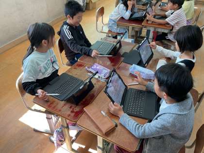 iPadを使って、自分ならではのリズムを作り、友達と交流しました。