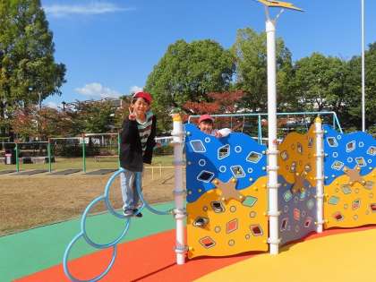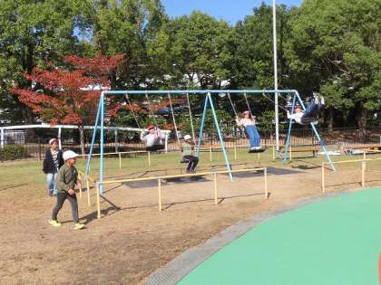 子ども達が楽しみにしていた社会科見学の日です。最高の秋晴れです。学校を10時に出発してみどりの広場で楽しく遊んでいます。