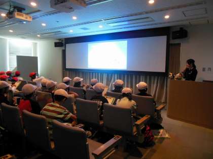 最初は部屋の中で警察官のお仕事についての映像を見ました。
