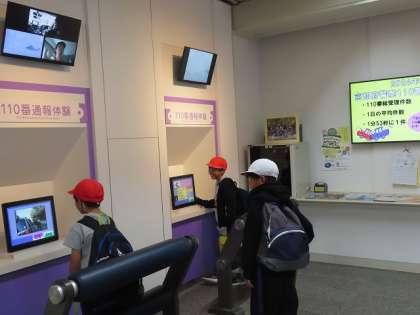 学習したことを生かしたクイズコーナーも楽しんでいました。全問正解したら思わず「やったー!」と声が上がっていました。犯人を捜す時の似顔絵のパーツを自分で選んでつくるゲームも楽しんでいる子がたくさんいました。