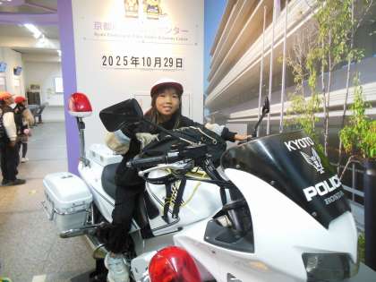 顔はめパネルや白バイに乗りました。