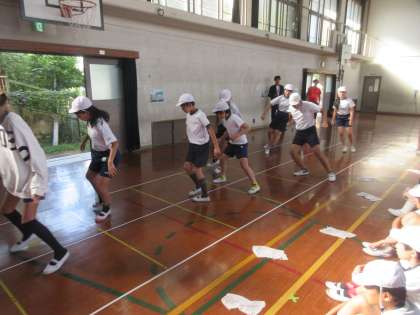 次は、巧みな動きを見る『サイドステップ』のテストです。一生懸命取り組んでいました。