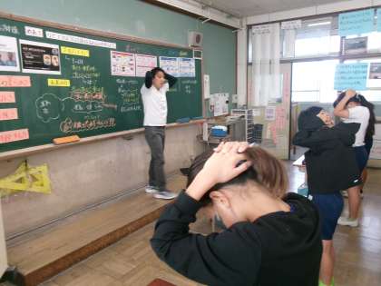 教室の中で実際に体を動かし、体を柔らかくすることの大切さや、巧みに動かすことがどんなことにつながるのか学びました。
