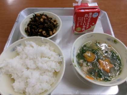 今日の給食の水菜とつみれのはりはり鍋にもハッピーキャロットが入っていました。