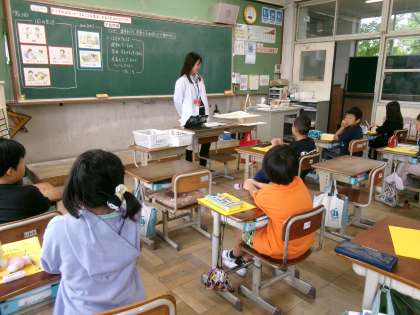保健の学習は養護教諭の押海先生にも入っていただき、より専門的な知識も学んでいます。
