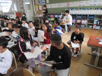 学習発表会に向けて、台本を読んでイメージを膨らませたり、言いたい台詞を選んだりしています。