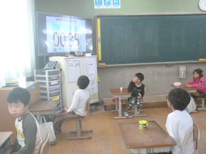 給食後の歯磨きをしっかりとしてから、フッ化物洗口をしました。お口の中を清潔にしたいですね!