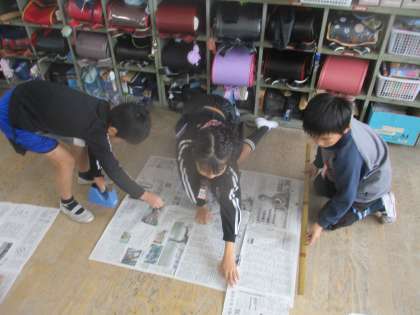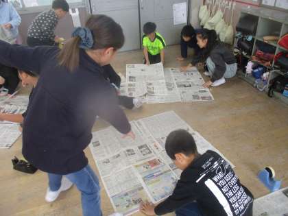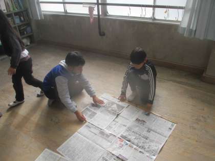 平方メートルについて学習しました。新聞紙で1平方メートルをつくりました。