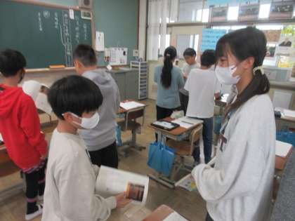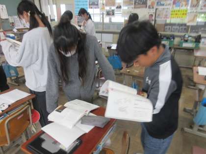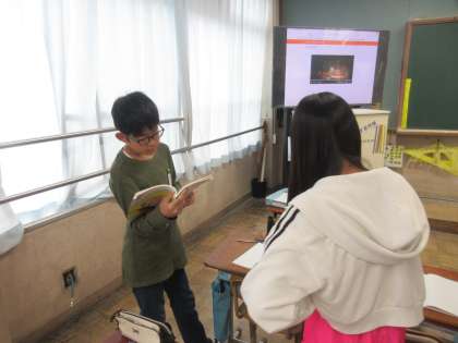 室町時代に生まれた狂言について学習しました。狂言の中の「柿山伏」を音読しました。