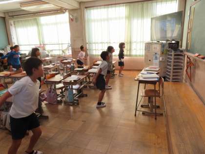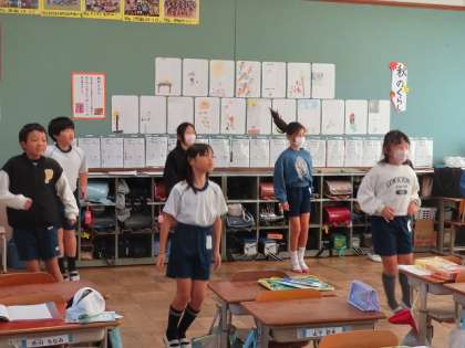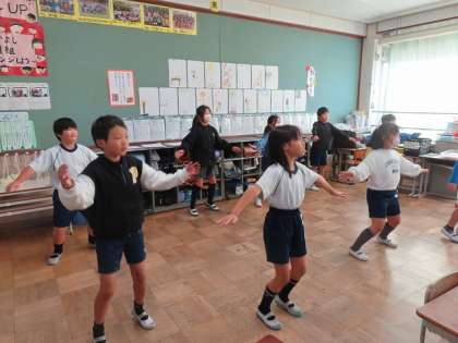 新しい健康チャレンジが始まりました。今回の動きは、跳んだり跳ねたりすることが多いですが、みんなノリノリで頑張っています。
