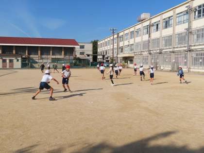 鉄棒の学習の前に鬼ごっこをしました。久しぶりにクラスのみんなで運動所いっぱい使って嬉しそうです。元気いっぱい走り回っていました。