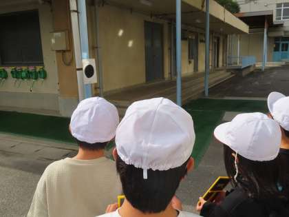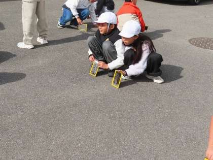 鏡に光を反射させてまとを照らす遊びを通して学習問題につなげて行きます。今までもやったことはあるけどみんなでやってみるととても楽しそうです。
