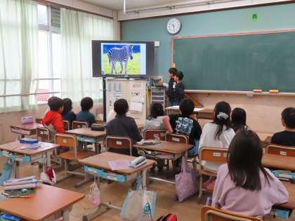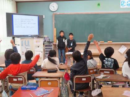 中間休みにクイズ大会をしてくれています。みんなも楽しんでいました。