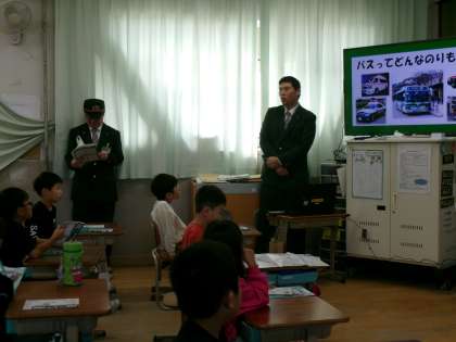 納所小学校に市バスがやってきました。子どもたちは朝から楽しみにしていました!