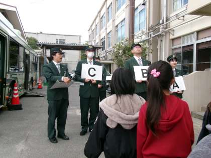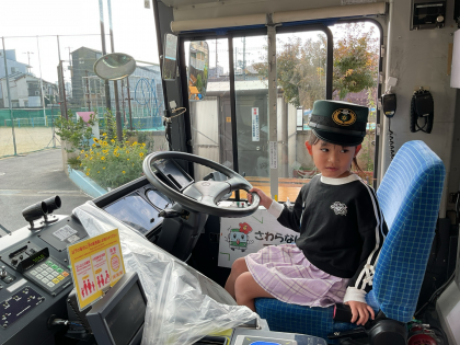 運動場横では・・・実際の市バスで体験をさせてもらいました。学校に市バスがあるって本当に不思議で、わくわくドキドキでしたね!