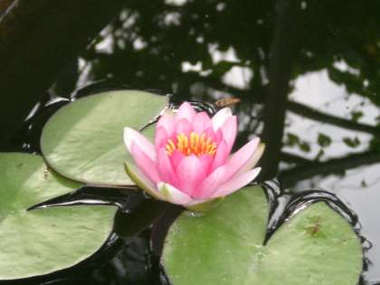 ひょうたん池を覘くと水練の花が咲いていました。そこに1匹のアブがずーとその花と戯れていました。