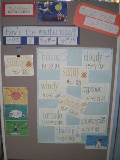 raining. cloudy. sunny. windy. snowing.など 覚えましょう。