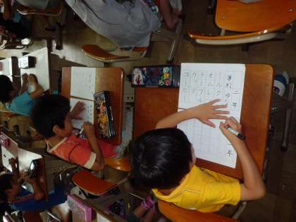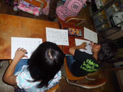 久しぶりにペン字書写にチャレンジしました。お手本を見て,いくつかのカタカナ言葉を書きました。集中していましたが,「失敗した〜。」と残念そうに見せてくれる子もいました。