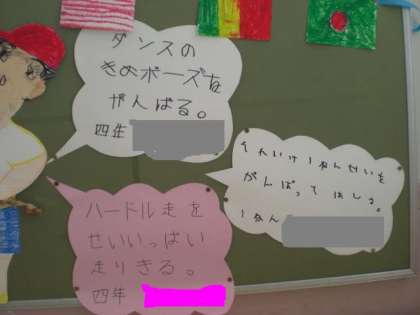 3組の3人は,今年の運動会でがんばる目標を一人一人が考えました。