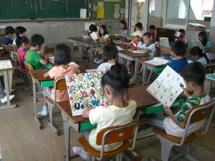 朝、8時半のチャイムで教室にもどってきた子どもたちは、