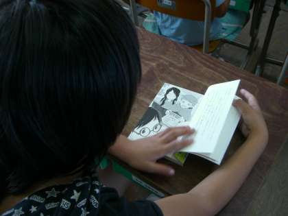 心をおちつけて読書をし、1日の学しゅうにむかっています。