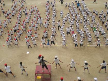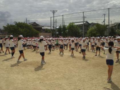 本日1・2校時に運動会全校練習を行いました。入場行進や全校ダンス,団体競技の練習をしました。