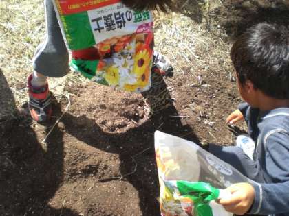 6月にうえた「やさい」のあとしまつをしました。花をさかせ,いっぱい実をつけてくれたやさいのくきをぬき,土を花だんにまきました。楽しく勉強させてくれて「ありがとう。」