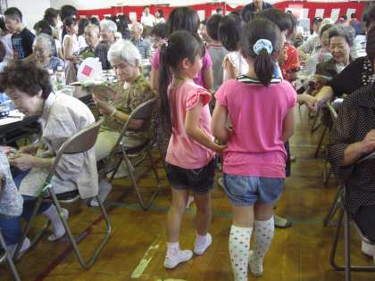 敬老会でプレゼントを渡して,地域の方に「えらいね〜!」とたくさん褒めていただきました。