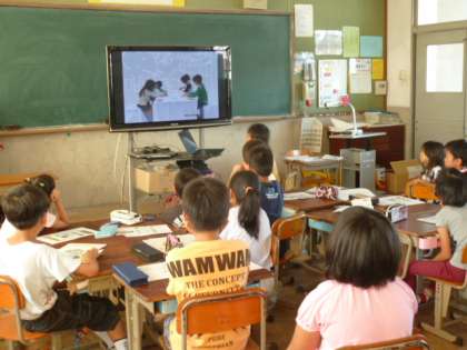 堀場製作所の方に来ていただき,「センサーの力」について授業をしていただきました。センサーとは何かについて知った後に,人間にも「感じる」センサーがあり,手・耳・鼻・口・皮膚の五感だということを学習しました。