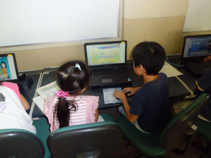 生活科の生きもの調べで,コンピュータルームに行きました。クリックやドラッグなど,基本操作もままならぬ子どもたちですが,二人組で協力しながら生きものの写真にたどりつきました。