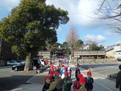 生活科の学習で,冬の町たんけんに行ってきました。これまで春・夏・秋と見てきましたが,今回でまとめとなります。「木に葉っぱがない。」「おうちやお店にしめ飾りがある。」「節分の広告がある。」「駅の改札口が広くなった。」など,みんなの見る視点もはっきりしてきました。
