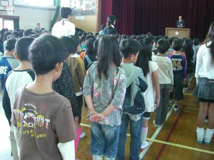 しゅうぎょうしきと同じく、一生けんめい校長先生の話を聞くことができる子のすがたが「ちらほら」見られました。