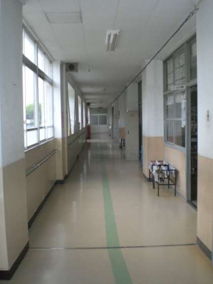 本校の校舎は北側に東西方向に建てられています。そのため廊下も途中で少し曲がっていますが,ほぼ一直線に伸びています。その長さは,122mもあります。つい走ってみたくなりますが,安全歩行を心掛けています。