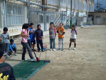 なかなか空気を入れるのが重くて大変でしたが、ペットボトルがとんでいった時には、みんないっせいに大声をあげていまいた。