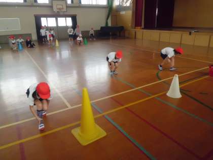 残念ながら,もう運動場は使えません。体育は体育館のみで行っています。今日は体ほぐし運動。おし相撲,引っぱり相撲,ライン鬼ごっこ,いろいろなリレーなど,寒いけど頑張っています。