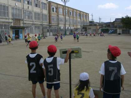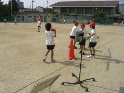 体いくの学しゅうで「ボールけりゲーム」がはじまりました。