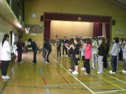 本日,洛水中学校,横大路小学校,納所小学校の三校が納所小体育館に集まり「三校親善スポーツ大会」が行われました。