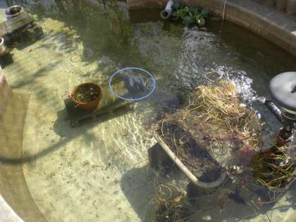 魚のいなくなった「ひょうたん池」がこんなにきれいになりました。今は鮒が3匹泳いでいます。
