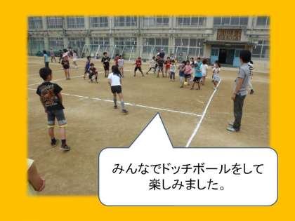 今日は土曜学習の後,ふれあい土曜塾の取組でみんなでドッチボールをしました。