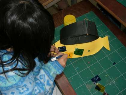 カッターナイフで切り取ったところに、セロハンをはりつけます。