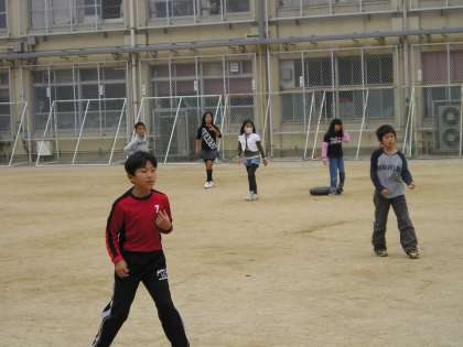 10日(水)4時間目,お誕生日会の計画でキックベースボール大会を行いました。ふだんはボールをけってはいけませんが,この日は特別。みんなのびのび遊ぶことができました。でもおとなりの砂場では,3年生がはばとびの学習中。横で騒ぎすぎてごめんなさい…。