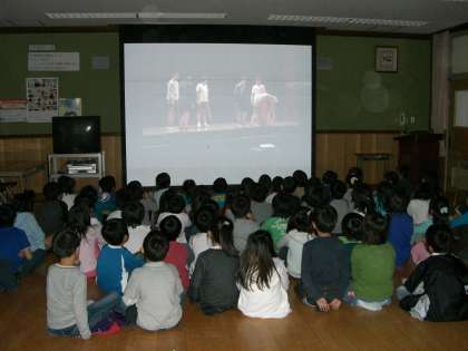 3時間目には、ふれあいサロンでビデオかんしょうしました。