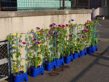 いよいよ夏本番!1年生のあさがおたちも朝からとても元気に咲いています。