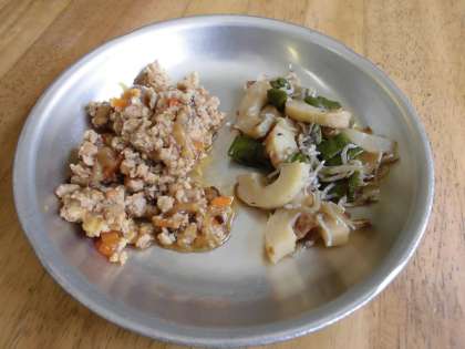 とりそぼろ丼の具 伏見とうがらしのじゃこ炒め すまし汁 きざみのり