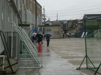 本日は冷たい雨の中の登校となりました。予定していた3組・1年,2年の社会見学も来週に延期します。