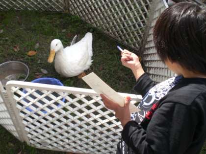 学校にあるものや生きものについて詳しく調べ,絵と文にしていきます。
