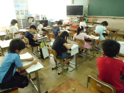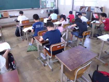 夏休みもがんばっています。宿題はジョイントプログラムに向けた問題に取り組んでいます。今までのおさらいですが,なかなか難しいです。休み中に苦手なところを克服しましょう。