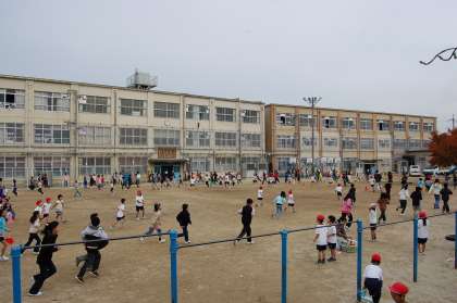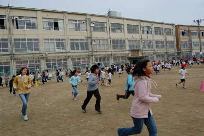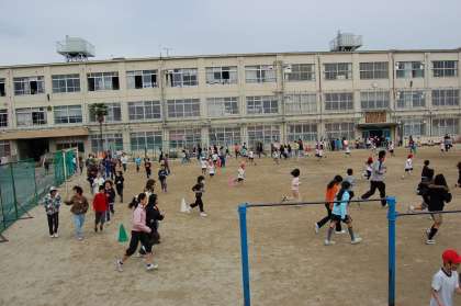 今日は1・3・5年生のかけあしの日です。1年生は初めてですが,一生懸命に走っていました。