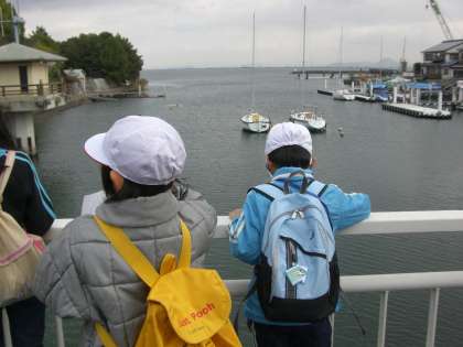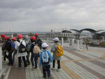 雨で延期になっていた4年生との社会見学,今日はまずまずの天気で実施することができました。