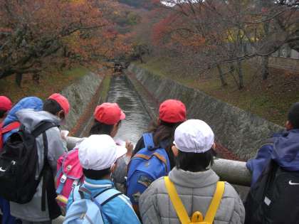 私たちが毎日使っている水はどこからどのように送られてくるのだろう…。浜大津の水の取り入れ口から小関峠を越えて,琵琶湖疏水に沿って歩きました。